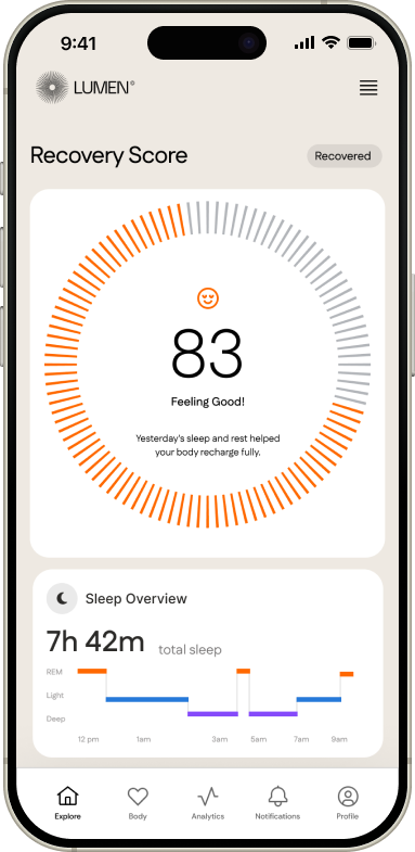Every stride, heartbeat, and breath tells a story and Lumen listens. Powered by precision sensors and adaptive AI, it helps you understand when to push harder, when to rest deeper, and how to perform at your best.insight